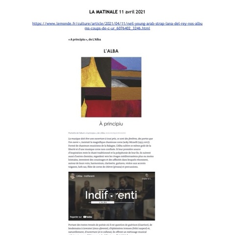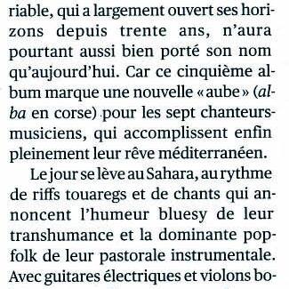 19 août Saint Antoine de Ficalba, Festival des musiques et chants du monde / 20 juillet à PALMA DE MAJORQUE (Festival Cançons de la Mediterrània) / 7 juin, 35e Musicales de Bastia / 6 juin à Dortmund, Domicil / 17 février à Tarbes (65), Le Parvis Scène Nationale / 18 février à Bayonne (64), Scène Nationale Sud-Aquitain