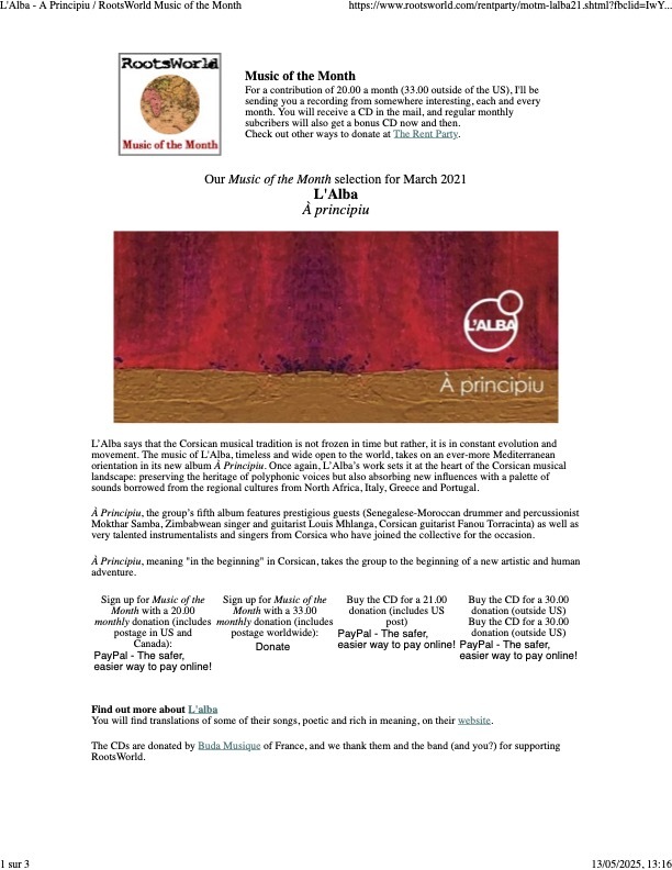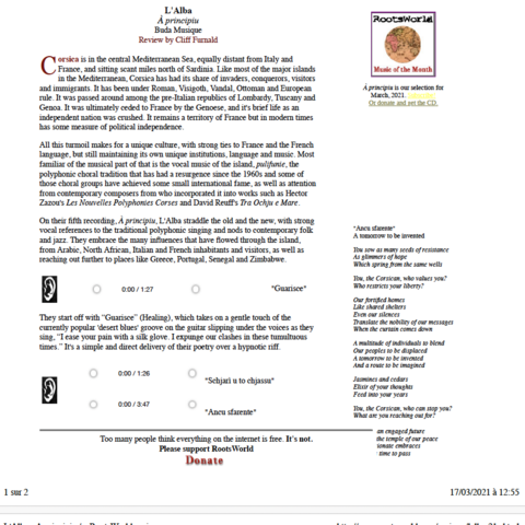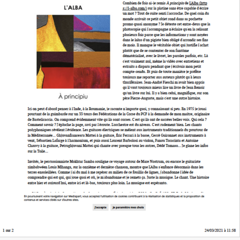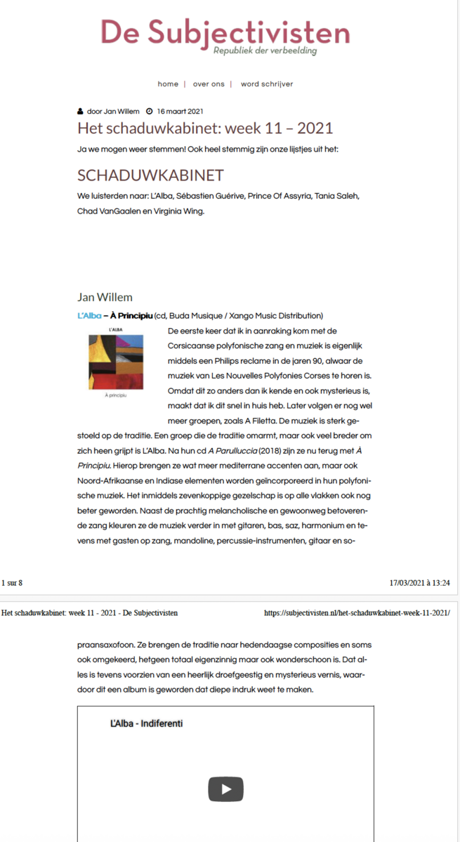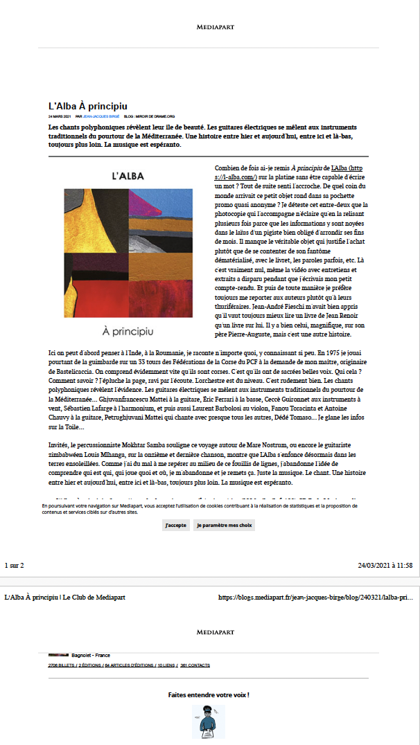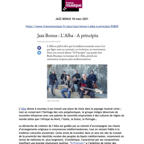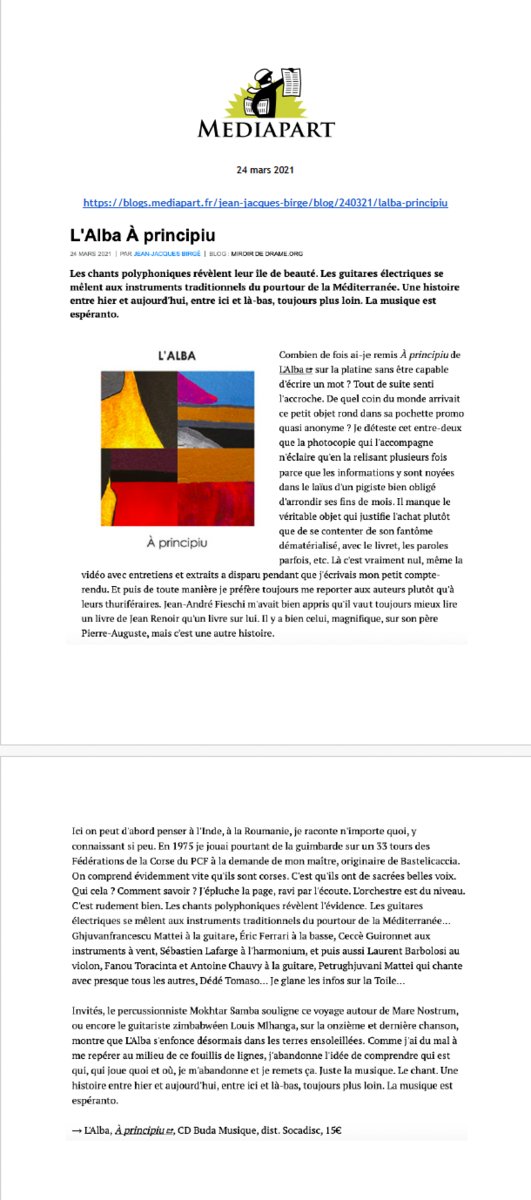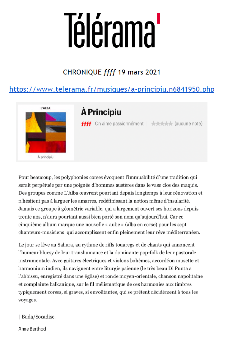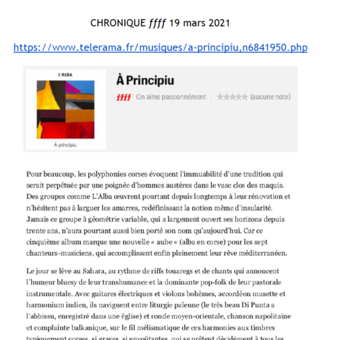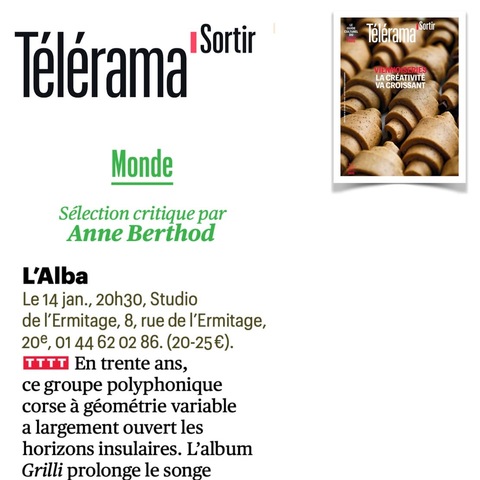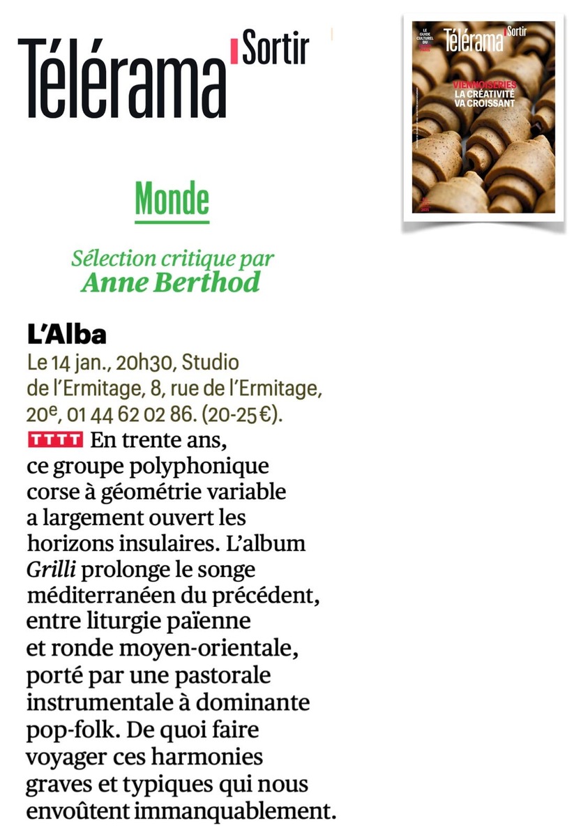 7 décembre à Paris (75), Studio de l’Ermitage / 8 décembre à Paris (75), Studio de l’Ermitage / 1 septembre, Festival Settembrinu di Tavagna